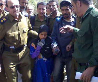 The Yemeni minor girl who was about to get married ;the girl with the police. Photos by Yasser Ubbad /Gulf News Archive