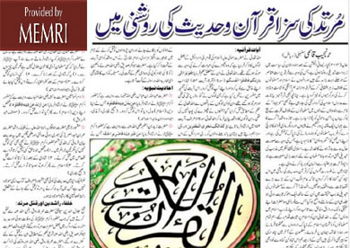 In a recent article, the leading Indian Urdu daily Urdu Times published an article, written by Muhammad Najeeb Qasmi Sanbhali, who quoted verses of the Quran, Hadith (sayings and deeds of Prophet Muhammad), as well as sayings and practices of the Righteous Caliphs (the first four caliphs of Islam: Abu Bakr, Umar Ibn Khattab, Usman Ibn Affan, and Ali Ibn Abi Talib) to justify that the apostates, i.e. Muslims being converted to Hinduism, are justified to be killed.